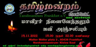 நம் ஒவ்வொருவரின் தேசியக்கடமை மாவீரர்களுக்கு வணக்கம் செலுத்துவது எனவே எமக்காய் உயிர்த்தியாகம் செய்தவர்களை வணங்கி மலர்தூவிடவாரீர்.19.11.2022 அன்று 18:00.